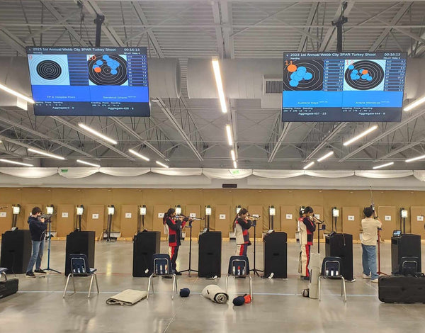 Athena for Clubs allows coaches to watch their shooters’ performance across the firing line in real time on a TV screen using the MM100 Spectator Display. There is no walking downrange to change out paper targets periodically. This greatly reduces the manual work of scoring paper targets, increasing trigger time and improving overall efficiency during practices.
