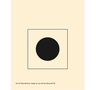Athena's 10m air pistol aiming masks for the NC100 and NC200 electronic scoring targets. It is made of high quality target paper and has a 59.5mm aiming bull. It is intended for use with the Civilian Marksmanship Program, USA Shooting, and National Rifle Association rulebooks.