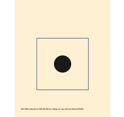 The Athena 50m Rifle reduced for 50ft Aiming Mask is compatible only with NC200 Electronic Scoring Targets. It is made with high quality target paper and has a 33.38mm aiming bull, equivalent to the USA-50 target. It is intended for use with USAS, CMP, and NRA rulebooks.