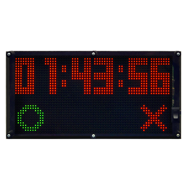 The MM200 Range Timer is the world's first fully automated range timer for the shooting sports. It is compatible with all Athena for Clubs ranges. The MM200 starts and stops automatically with range scripts controlled by Orion, with no additional configuration required. Red and green safety lights also display at the same time as targets and monitors. The MM200 has the capability to double as an MM100 spectator display when connected to an HDMI-compatible display. In practice mode, the Range Timer may act as a counting clock or display the time.